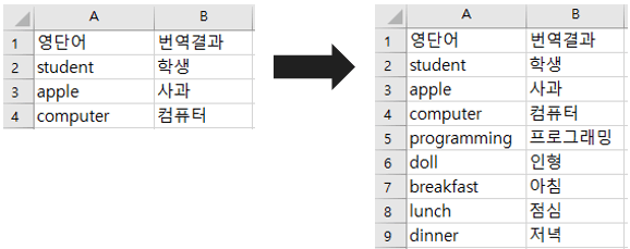 - 'my_papago.csv' ํ์ผ์ ์๋ ์๋จ์ด์ผ ๊ฒฝ์ฐ, ์ ์ฅํ์ง ์์